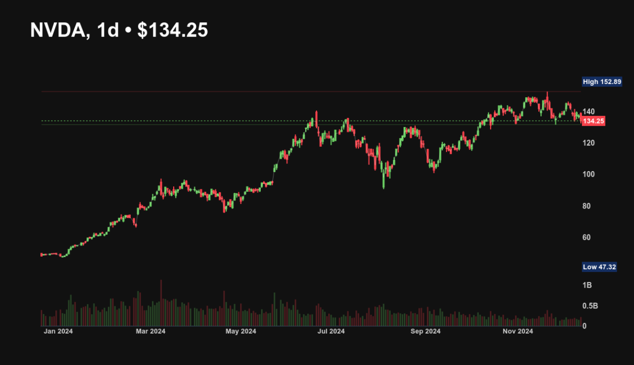 Displays a visual chart of stock price movements over a specified interval for a specific stock.