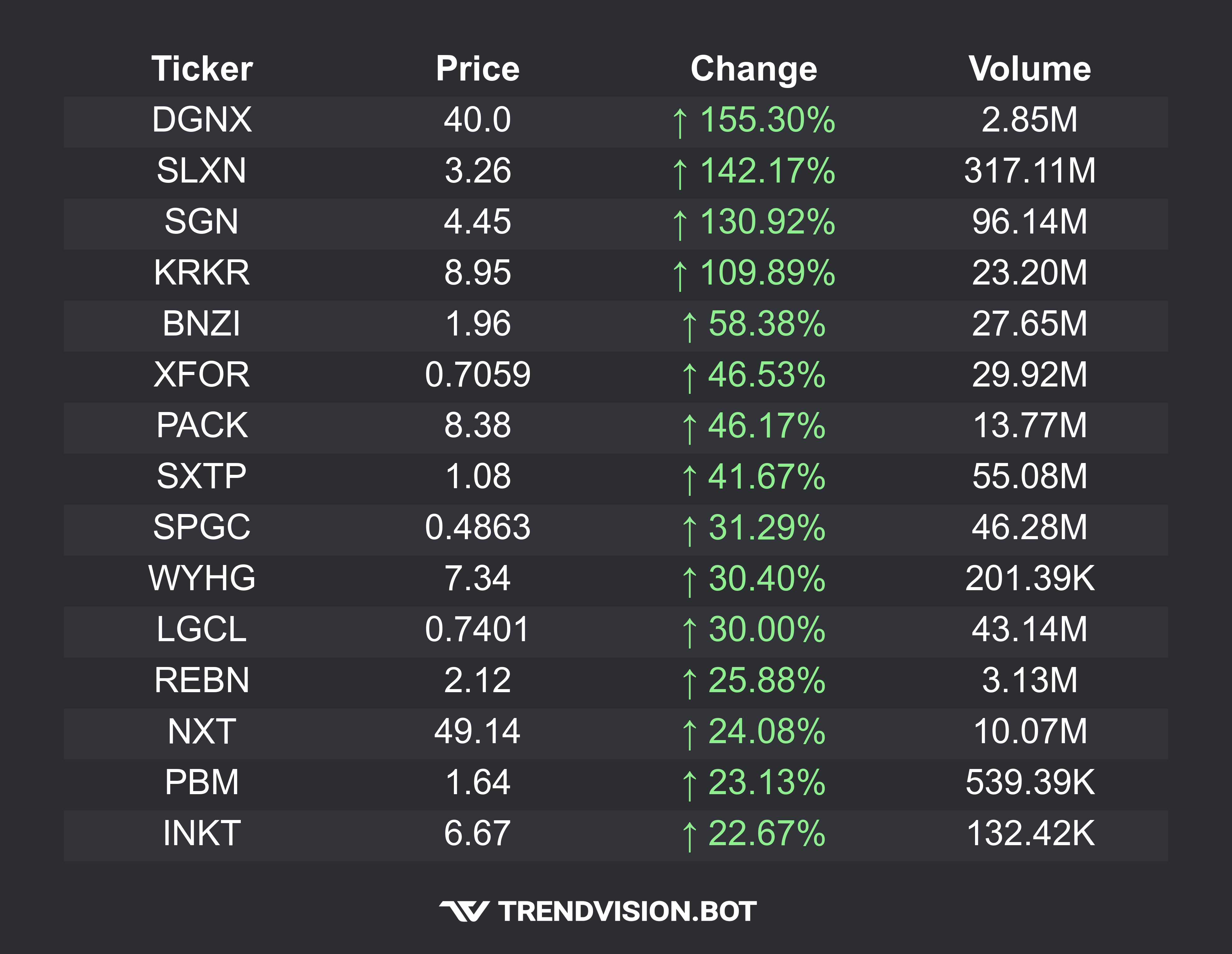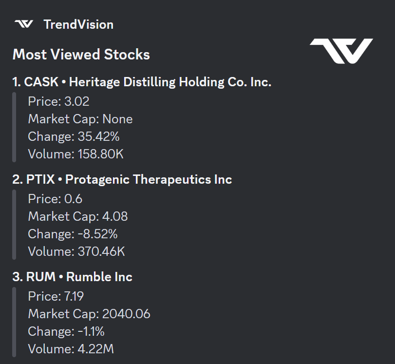 A dedicated channel that updates every minute with the top-performing stocks for the current market session (Pre-Market, Regular, After-Hours).