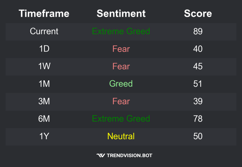 Shows a sentiment score for a specific stock based on social media comments, indicating levels of fear or greed surrounding that stock.