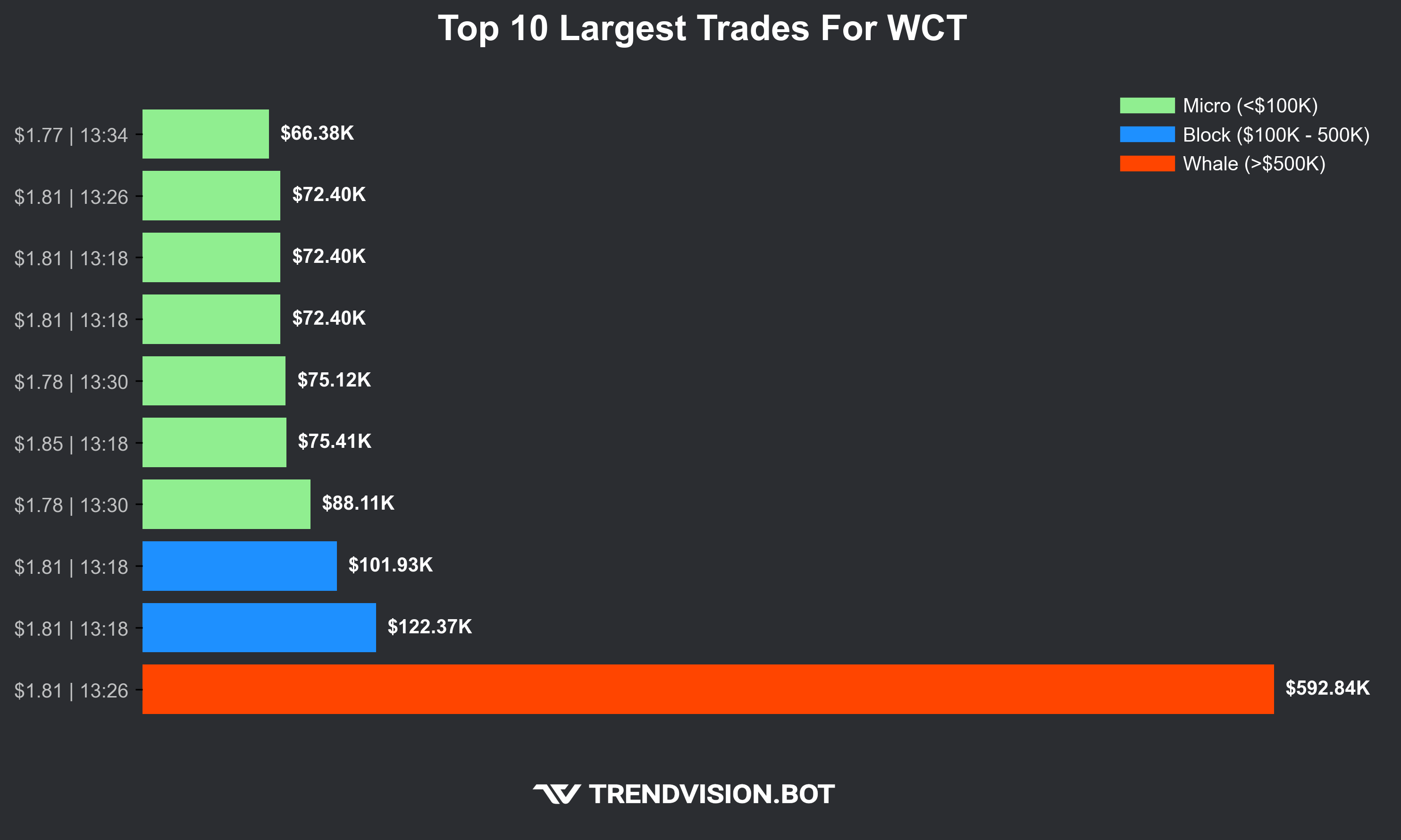 Stay ahead of the market with alerts for large trades, categorized by small, medium, and large transactions, indicating significant market activity.