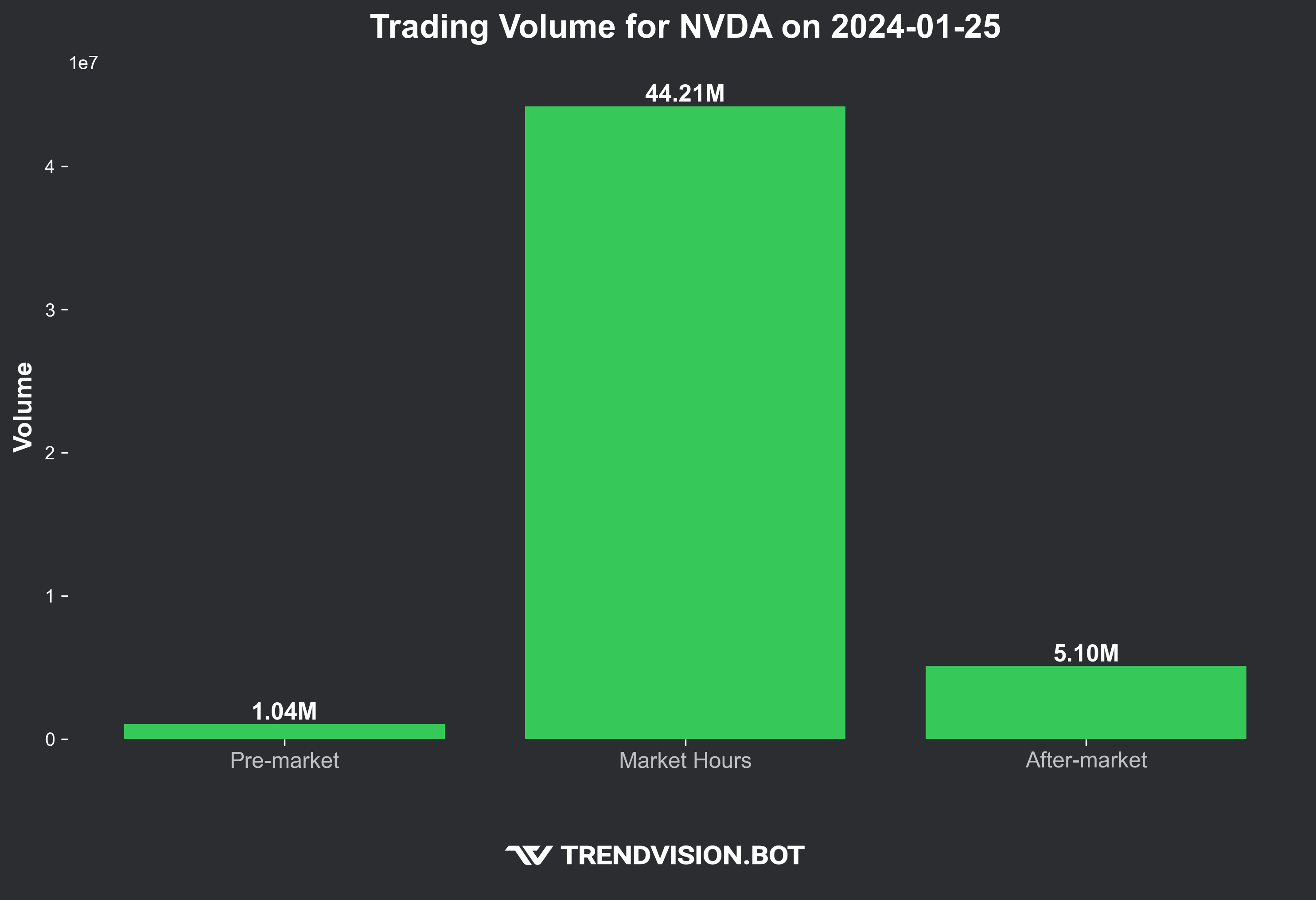 Displays a stock's trading volume during both market and extended hours for a specific stock.